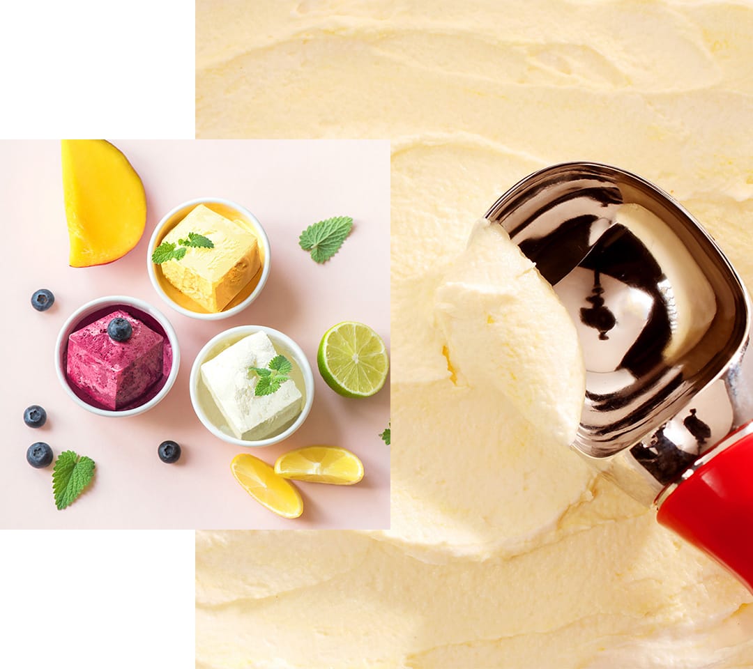 ジェラートとはイタリアン・アイスクリームのことで、一般的なアイスクリームに比べて、乳脂肪分が低くいのが特徴です。 当店では厳選した旬の果物のおいしさをそのままジェラートに仕上げました。風味が濃厚でありながら、甘さ控えめでヘルシーなキューブジェラートをご堪能ください。 さらにジェラートの製法を活かした、アイスキャンディ・アイスサンドも販売しております。